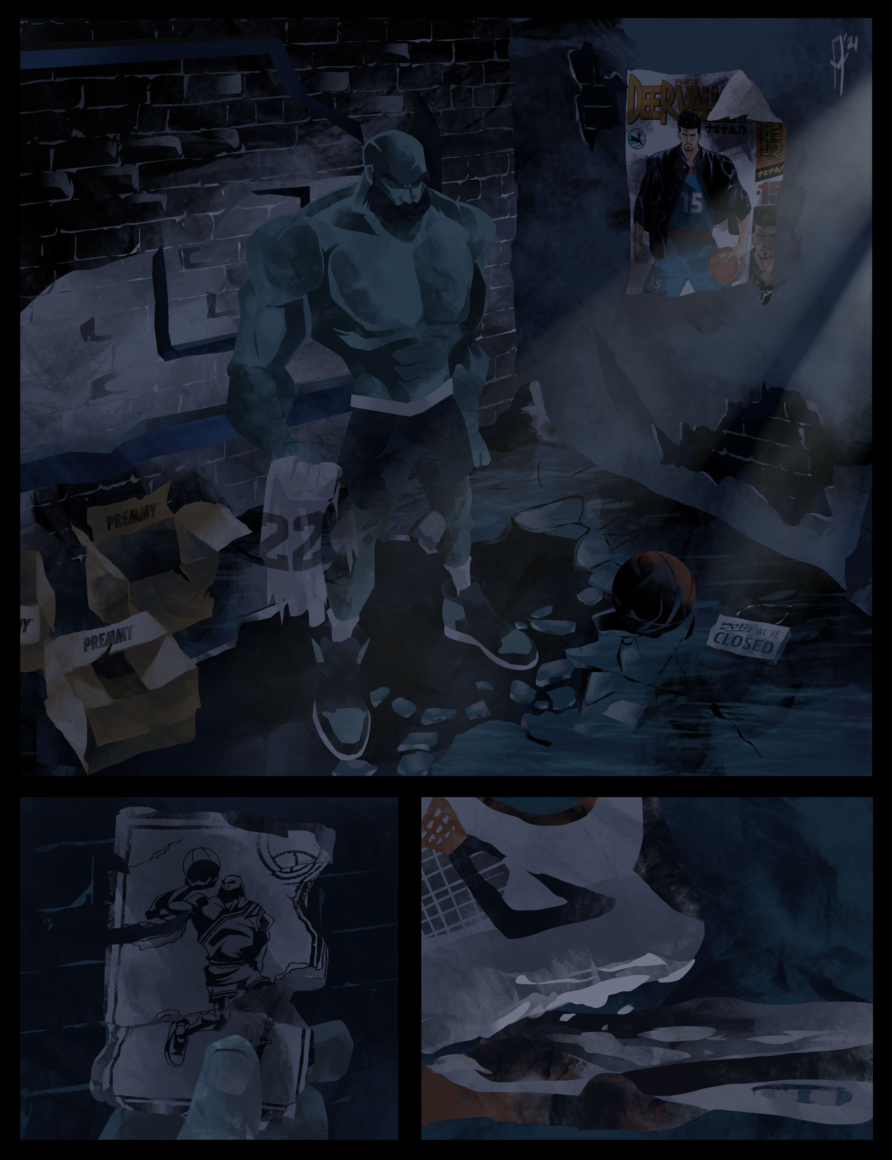Premytheus stops, looks up at the spot where nets once swished. He can’t build it all back, not right now, not just him. But a goal is enough. One at a time, starting with this one.